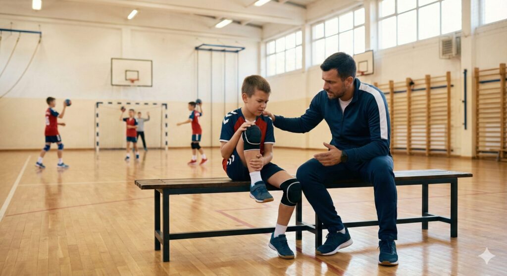 小学校高学年〜中学生くらいの、身長がぐんぐん伸びる時期に多く、サッカー・バスケ・バレーのようにジャンプやダッシュが多い競技でよく見られます。ハンドボールもまさにそのひとつです。