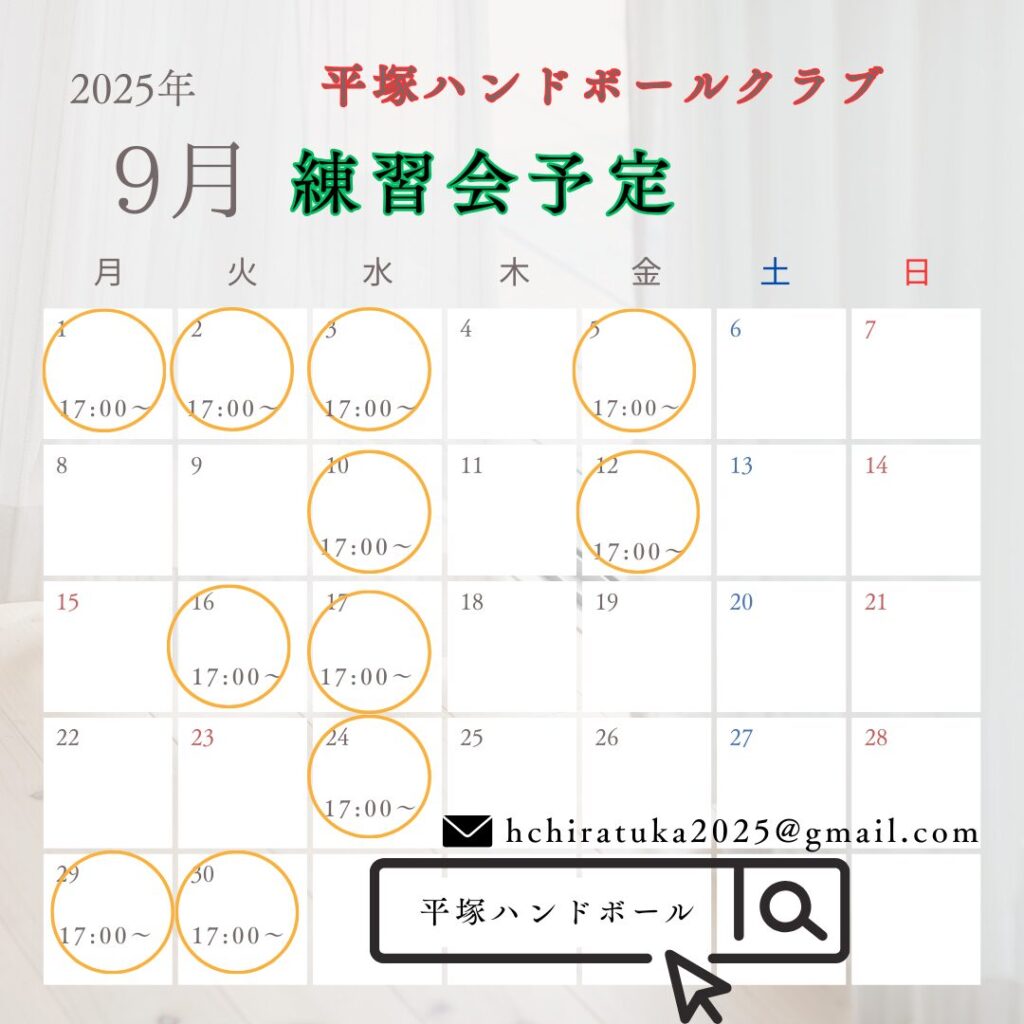 平塚ハンドボールクラブ 9月練習会予定